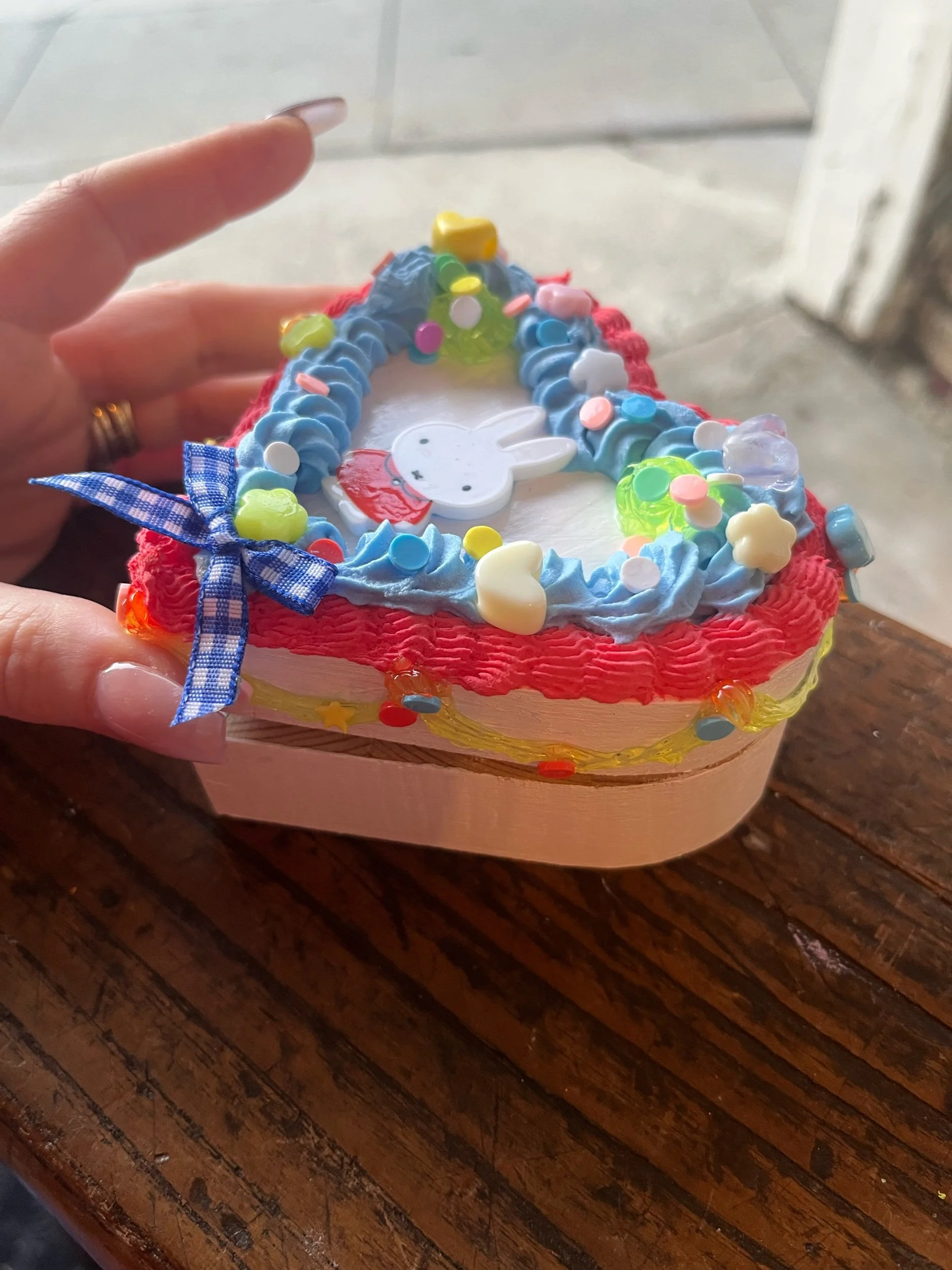 Shop › Miffy cake box Image 1 of 4 Image 2 of 4 Image 3 of 4 Image 4 of 4 Miffy cake box $40.00 SHIPPING INCLUDED IN PRICE wooden heart shaped cake box. Good for safety pins or matchbooks. Add To Cart Added! SHIPPING INCLUDED IN PRICE wooden heart shaped cake box. Good for safety pins or matchbooks.